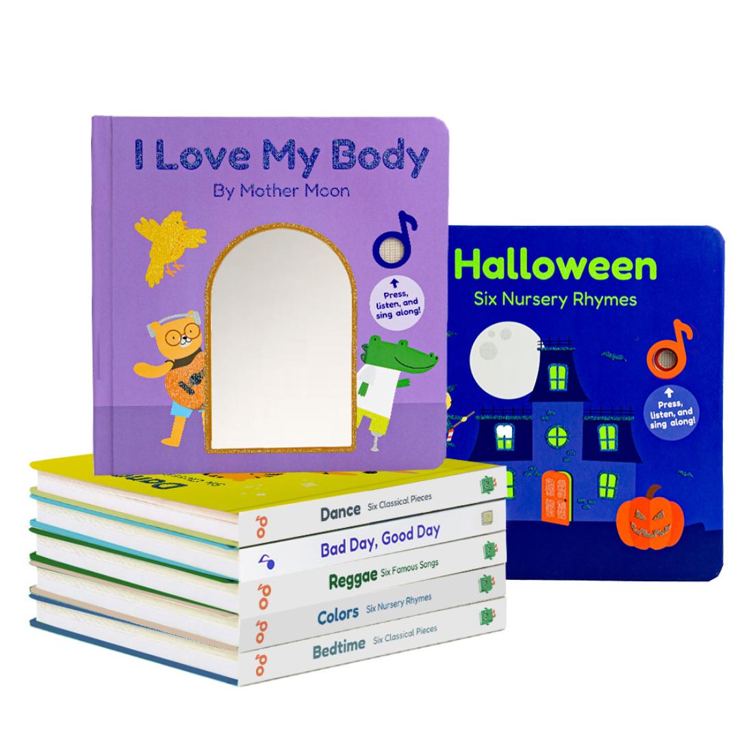 A dynamic collection of seven bestselling musical sound books designed to spark joy, build confidence, and inspire early learning. From body positivity and reggae beats to color recognition, emotional well-being, lullabies, and festive Halloween fun, this bundle is packed with songs kids love to sing to, move to, and fall asleep to.